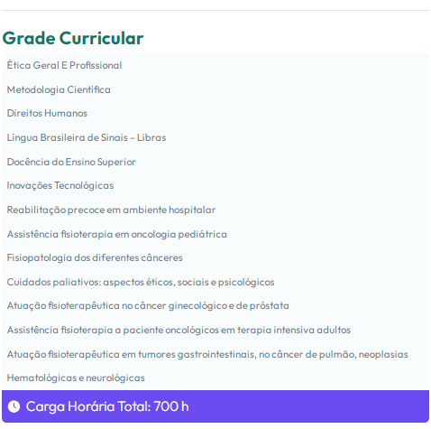 O curso de pós-graduação em Fisioterapia em Oncologia tem como objetivo profissionais para planejar, implementar e gerenciar processos que garantam a qualidade e a excelência nos serviços de saúde. Focado em melhoria contínua, segurança do paciente e eficiência operacional, o curso aborda temas como gestão de recursos, indicadores de desempenho e acreditação hospitalar. Ele prepara os alunos para promover soluções inovadoras, otimizando resultados e contribuindo para a sustentabilidade e humanização no setor de saúde.