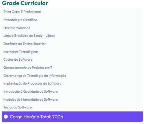 O curso de pós-graduação em MBA em Gestão da Qualidade de Software tem como objetivo capacitar profissionais para gerenciar e garantir a qualidade em processos de desenvolvimento de software. O curso aborda temas como metodologias ágeis, testes de software, auditoria de qualidade, gestão de equipes e melhoria contínua. Os participantes aprendem a implementar boas práticas para garantir a entrega de produtos de software confiáveis, eficientes e alinhados às necessidades dos clientes, promovendo excelência e inovação no desenvolvimento tecnológico.